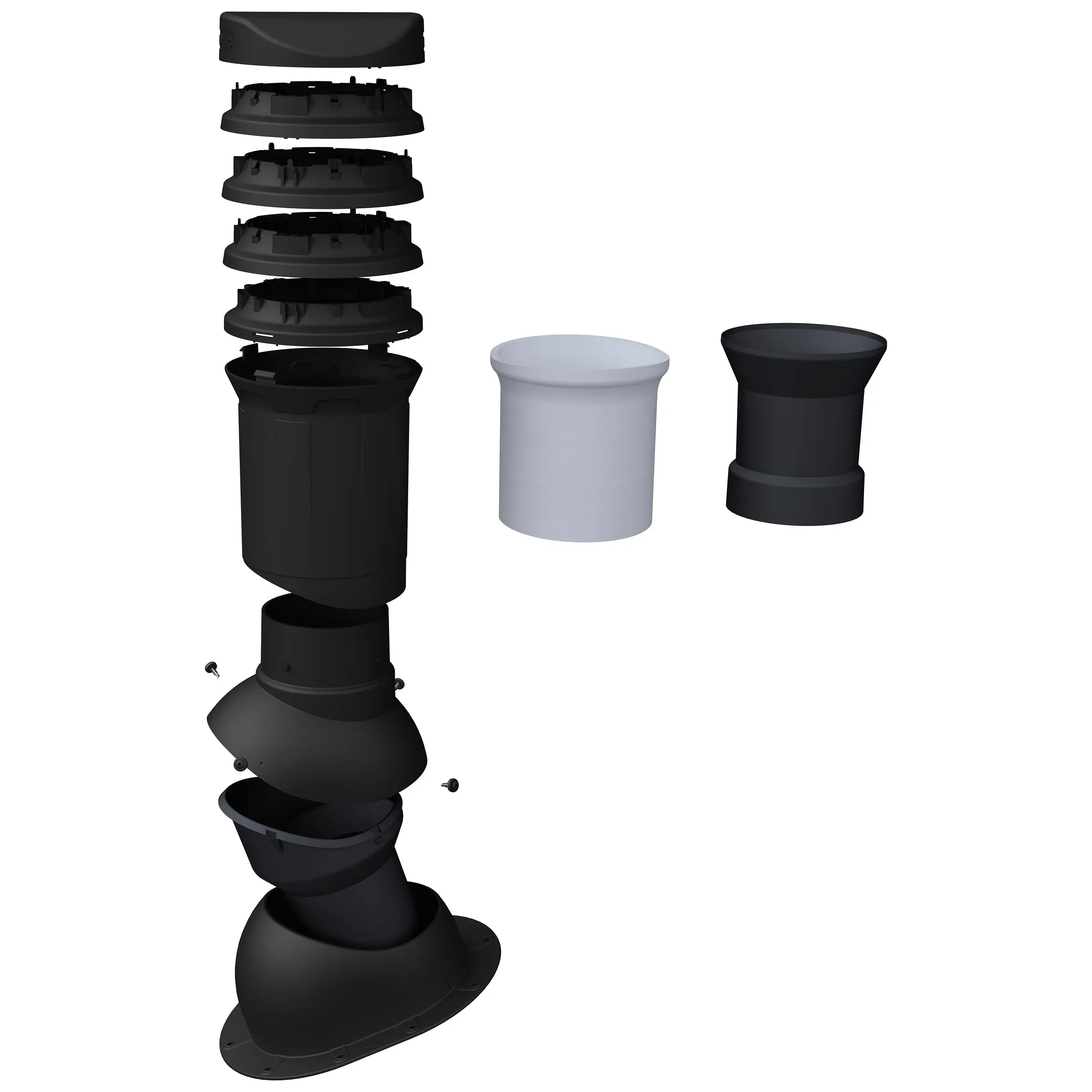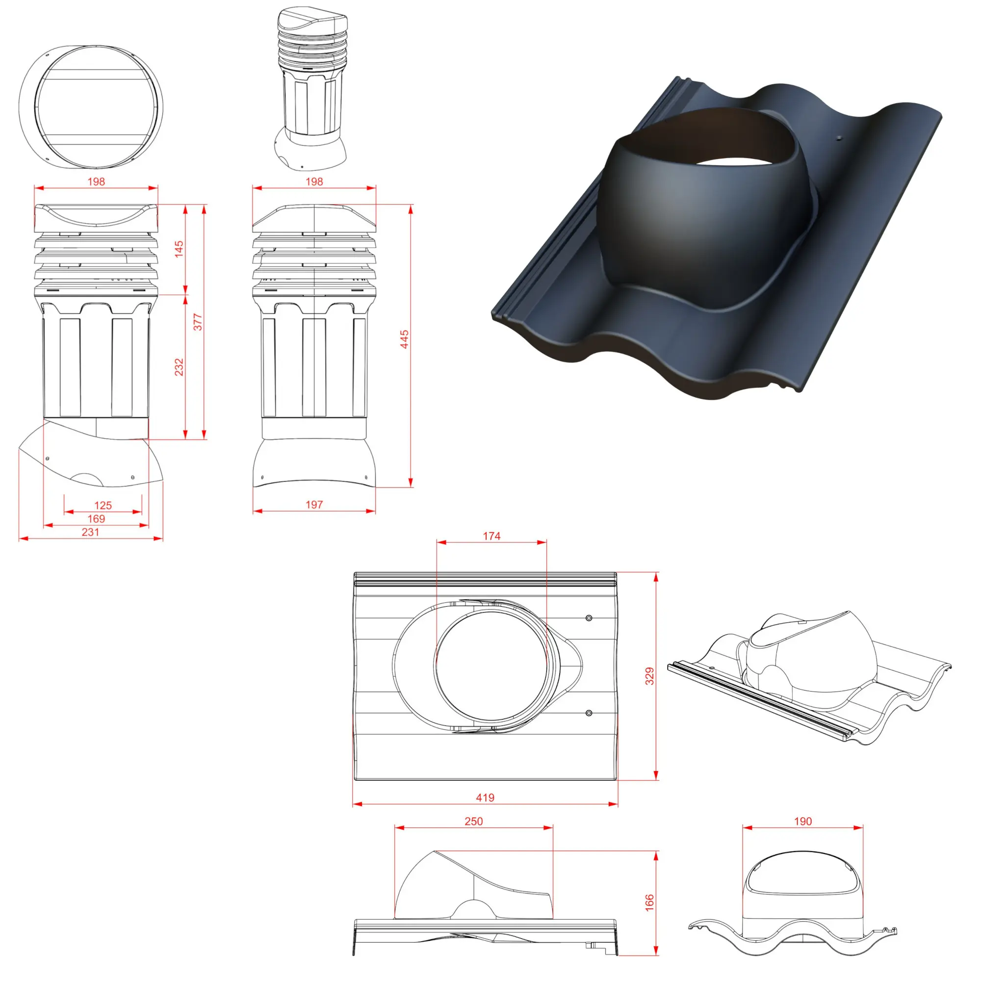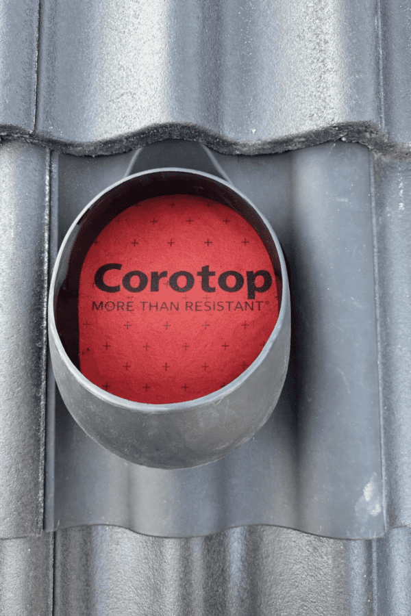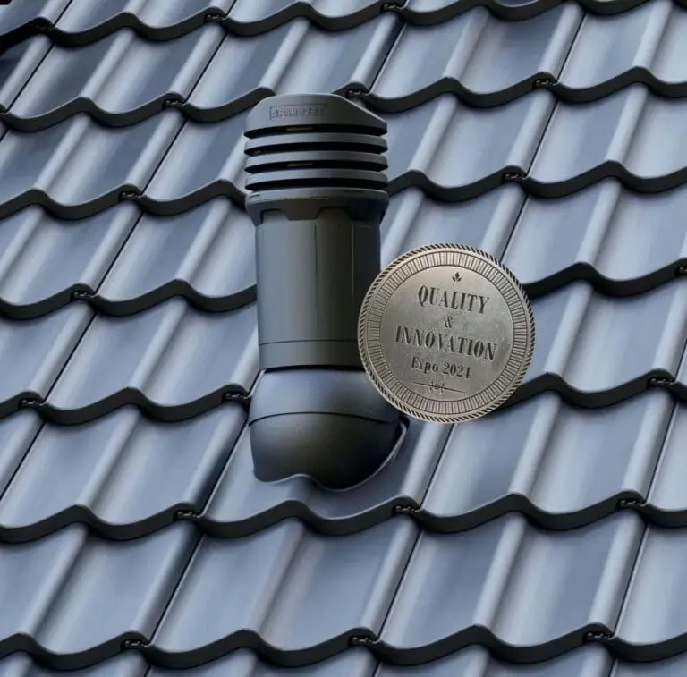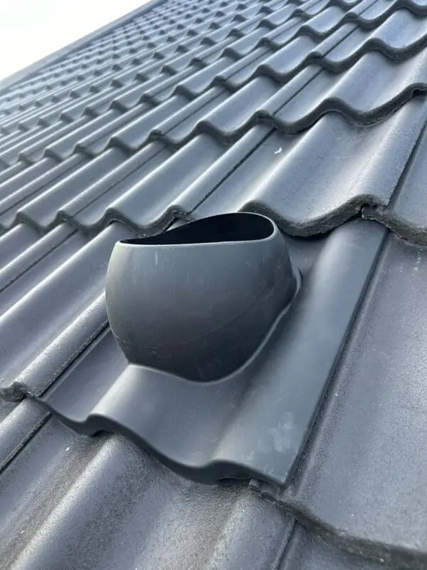 Isolert takventil med kondensavløp, beregnet for takstein av tegl og betong – SORT.